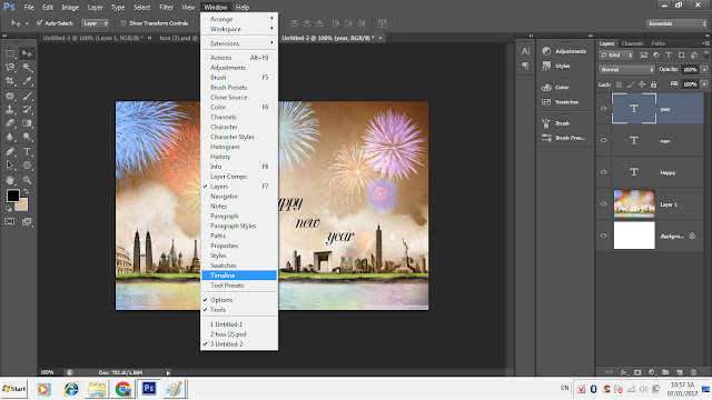 Các bạn dùng Horizontal Type Tool (T) để viết chữ lên