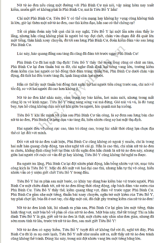 Thì ra Tôn Thiếu Phương được Tiêu Bố Y phân phó, vẫn đợi ở chân núi bên kia, khi bên này đánh nhau thì đã chạy tới, nhưng thấy được Tiểu Bố Y đã tới đỉnh núi, đang im lặng ngồi cùng nữ tử áo đen, chỉ sợ không tiện, nên lại ở dưới chân núi chờ.