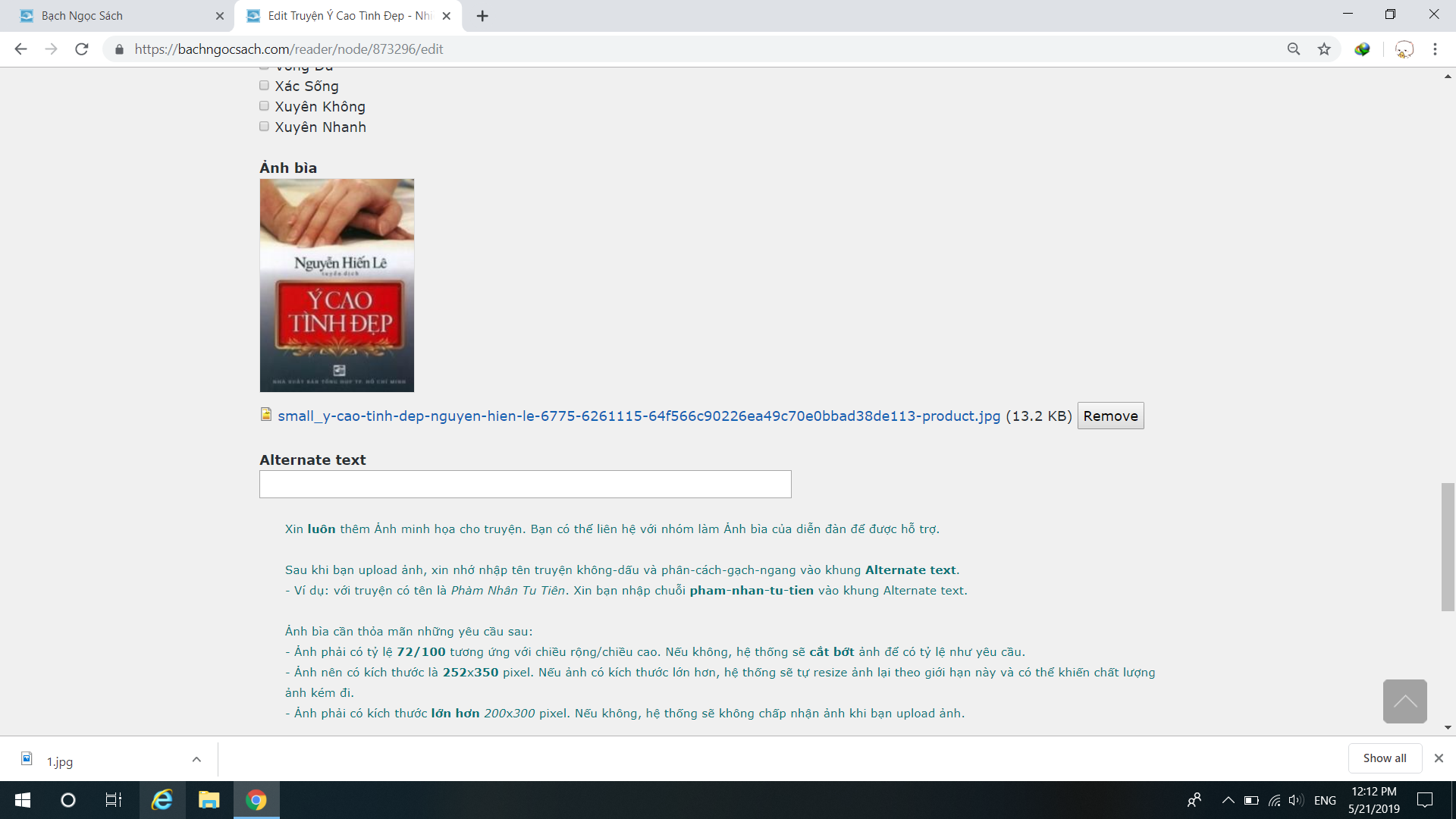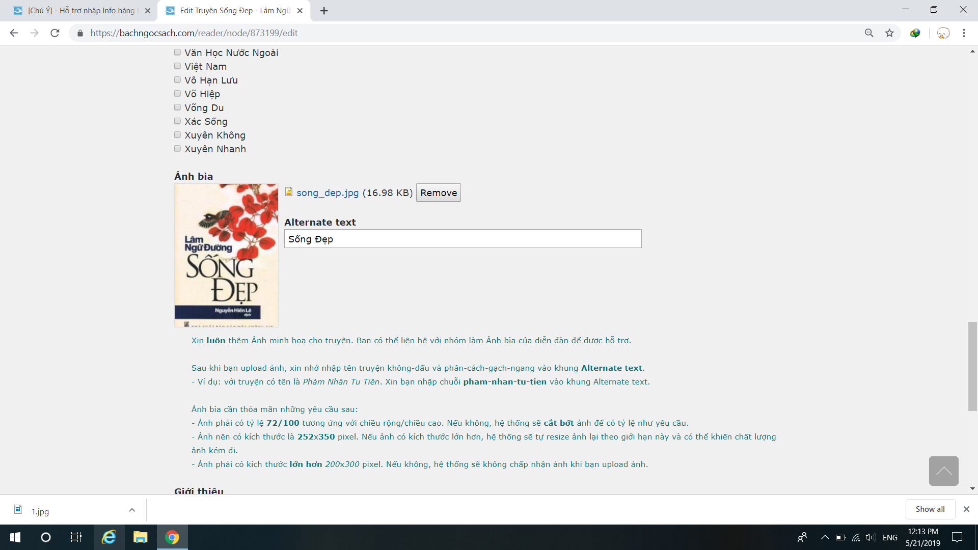 Mà huynh ơi, cái ô Alternate text huynh nhập sai rồi. Ví dụ truyện tên Sống Đẹp thì phải nhập là song-dep, chữ thường, không dấu, cách nhau bằng dấu gạch ngang. :xinloi: