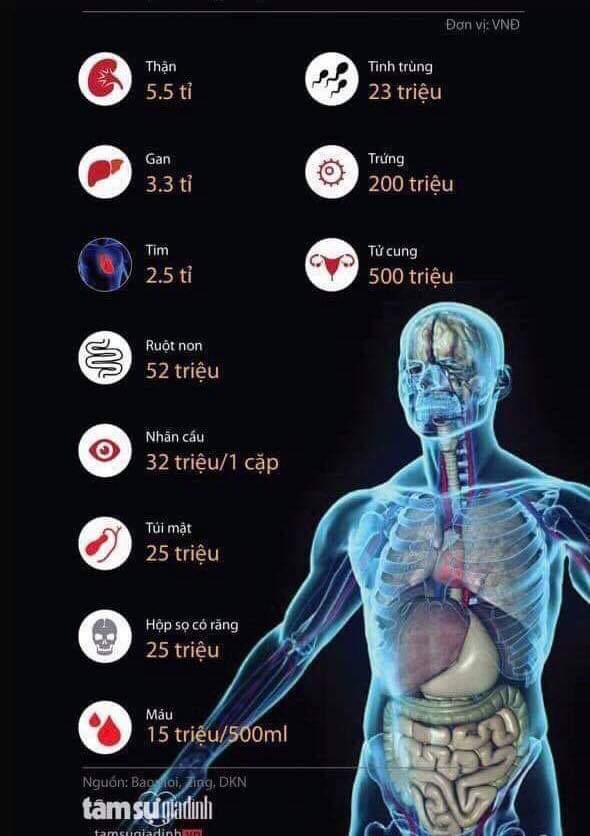 Vấn đề đó chỉ là lý thuyết a, bán tim xong thì làm gì còn mạng mà tiêu tiền, bán thận còn lâu mới đc 5.5 tỷ, chỉ có người mua mới phải mua mức giá đó, còn người bán được ít lắm a, vậy nên thà kéo cày trả nợ còn hơn bán thân