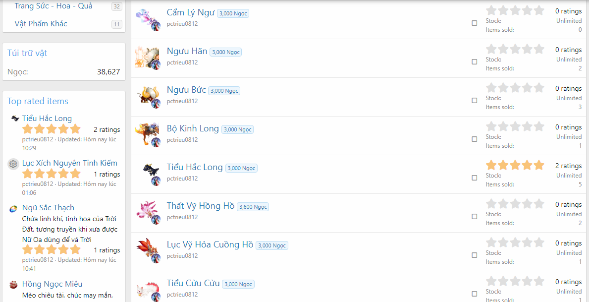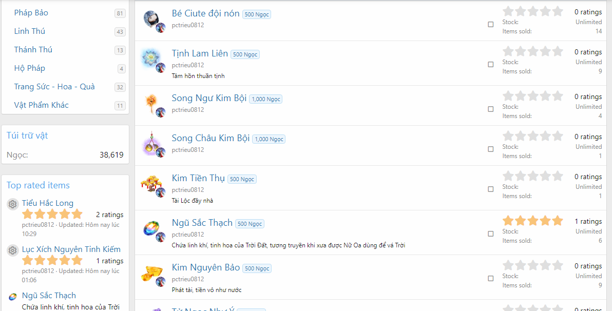 Ví dụ bộ vật phẩm "trất" của lão @Độc Hành sẽ hiện thế nàyMột số vật phẩm sẽ được cập nhật, không phải tất cả nhé