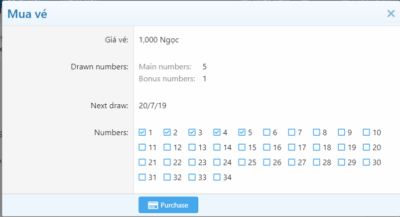 Như vậy chỉ cần bỏ ra 7k mua 7 vé, mỗi vé số đều khác nhau, ví dụ vé đầu tiên là các số: 1 -> 5, vé 2, 6 -> 10, cứ như vậy tức mua tất cả các số.