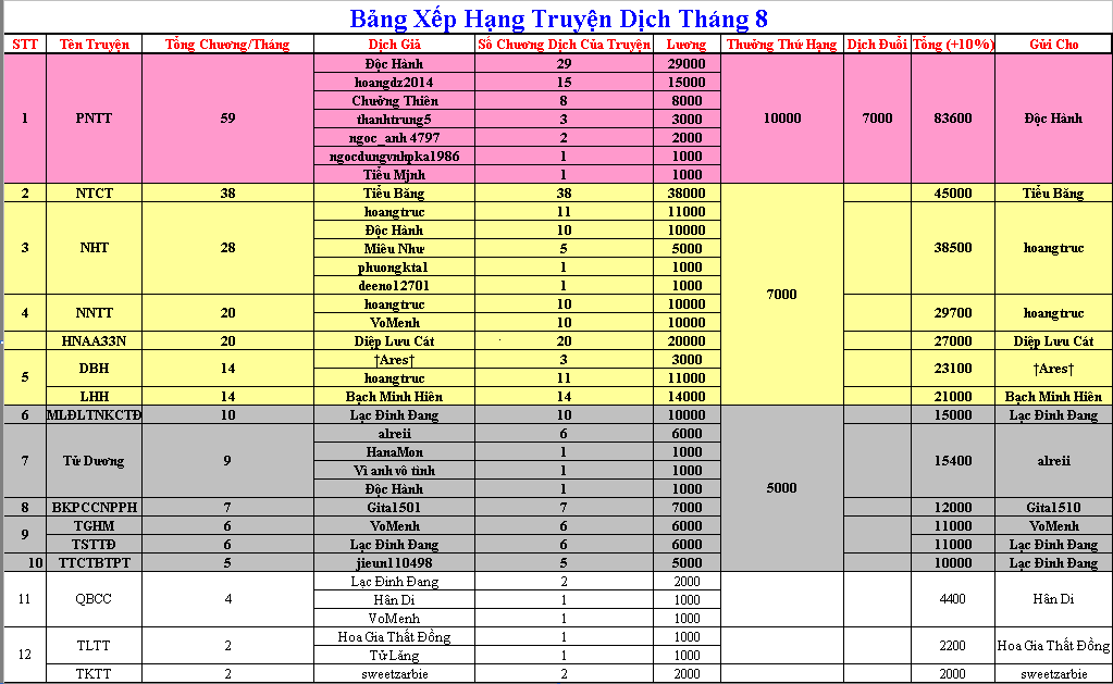 Lão @Độc Hành đệ nhất luônĐể tránh nhầm lẫn, lương đầu truyện sẽ gửi cho trưởng nhóm. Sau 3 ngày, thưởng cho từng cá nhân (nếu có) sẽ được gửi riêng.