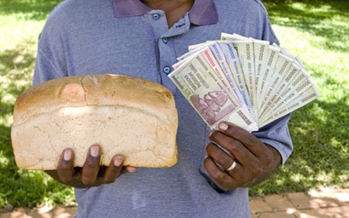 Khoảng năm 2008, đất nước này rơi vào cảnh lạm phát đến mức 500 tỷ %. Thời đó, 12 triệu đô la Zimbabwe chỉ mua được một bó rau diếp héo, thậm chí 100 tỷ đô la Zimbabwe chỉ mua được một ổ bánh mỳ.