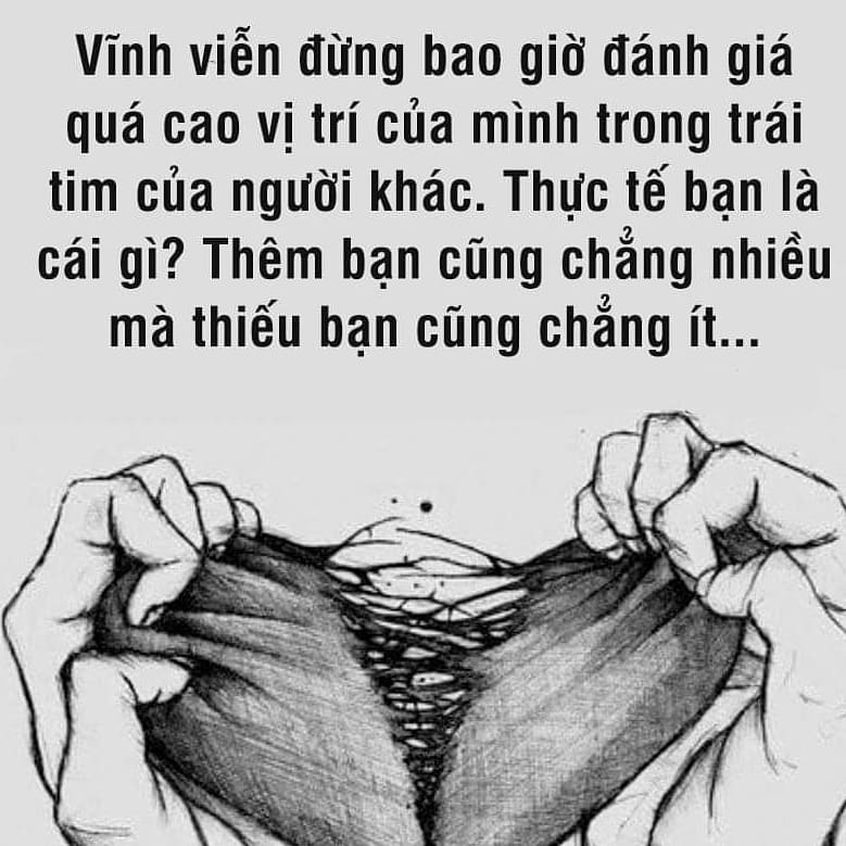 9. Vĩnh viễn đừng bao giờ đánh giá quá cao vị trí của mình trong trái tim của người khác. Thực tế bạn là cái gì? Thêm bạn cũng chẳng nhiều, mà thiếu bạn cũng chẳng ít…”