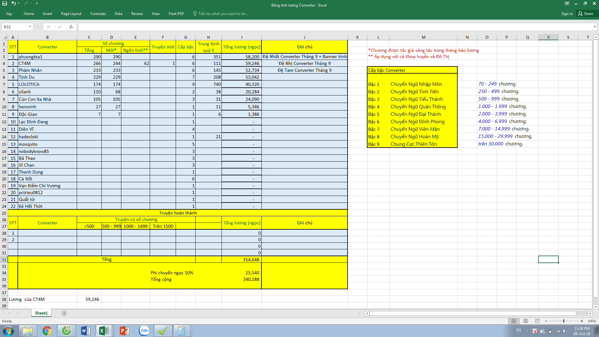 Sơ bộ bảng lương tháng 9/2019, các converter vào kiểm tra lại, nếu có sai sót hoặc thắc mắc thì liên hệ với @CT4M.