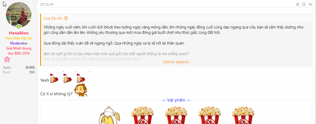 @Ái Phiêu Diêu muội đã quote về #2 rồi nha, k biết còn sót ai không, ai chưa thấy quà thì nhắn Mon nhá