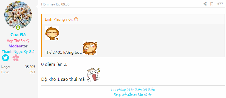 Linh Phong huynh trả lời 2041 nha, muội đã xem lại comment của huynh ấy nên mới trả lời lại đó ạ. Ahihi![]()