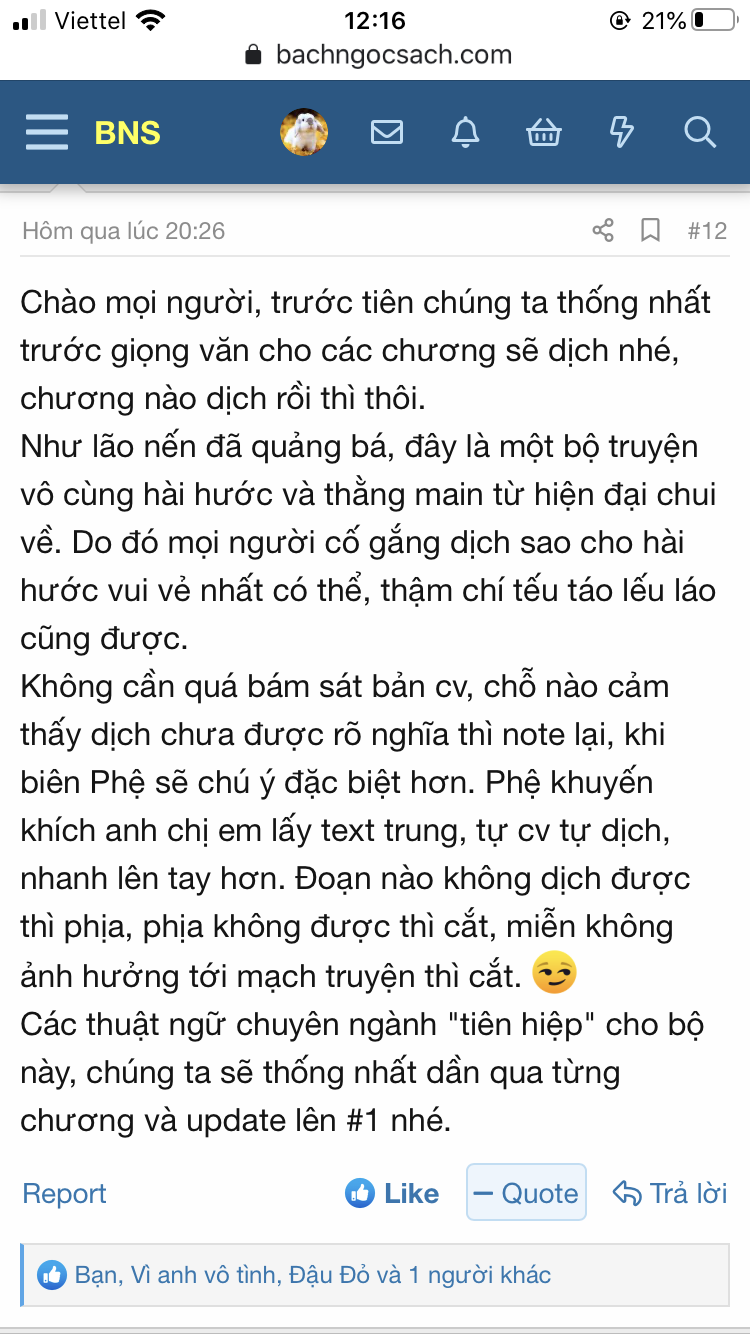 🍀🍀 Các dịch giả chuyên nghiệp như: @Đậu Đỏ, @BsChien, @Vì anh vô tình @... sẽ đăng các chương dịch trực tiếp vào topic này luôn nha.