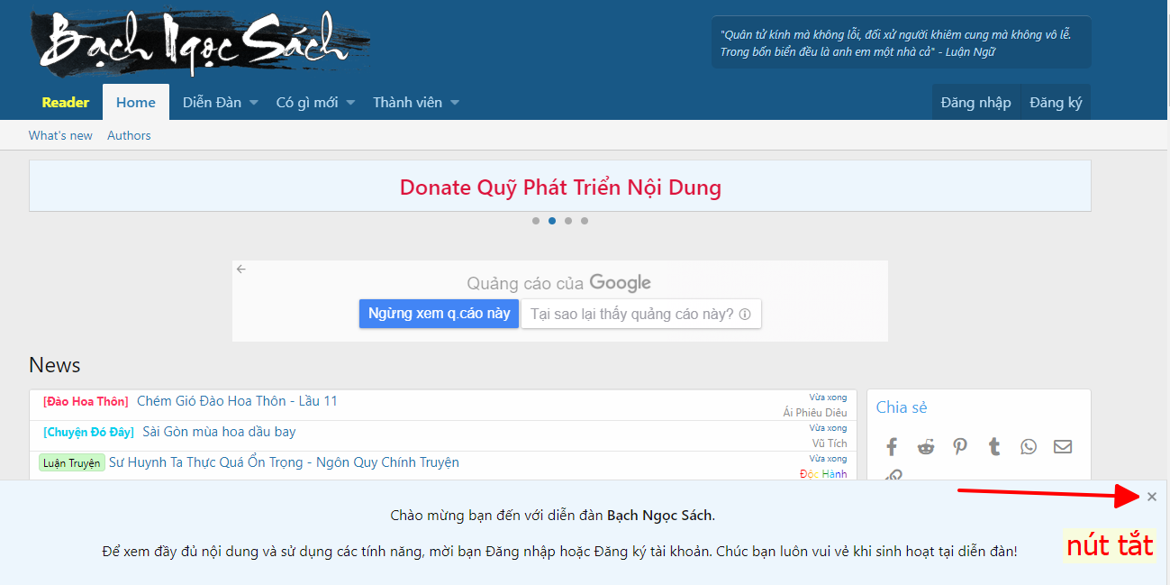 Nhưng cách này của đệ cũng là con dao hai lưỡi, nó cũng sẽ khiến cho một số khách không thích điều này và từ bỏ BNS hoặc là có một số diễn đàn khác cho truyện free cũng khiến họ từ bỏ và rời khỏi BNS. Cho nên cách này chỉ có thể thực hiện với một số truyện nổi và ở diễn đàn khác được đặt vip.