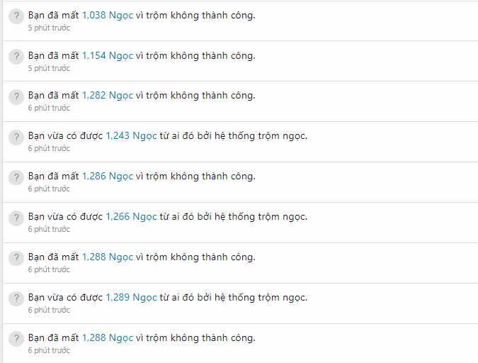 - Bạn vừa có được 385 Ngọctừ ai đó bởi hệ thống trộm ngọc.