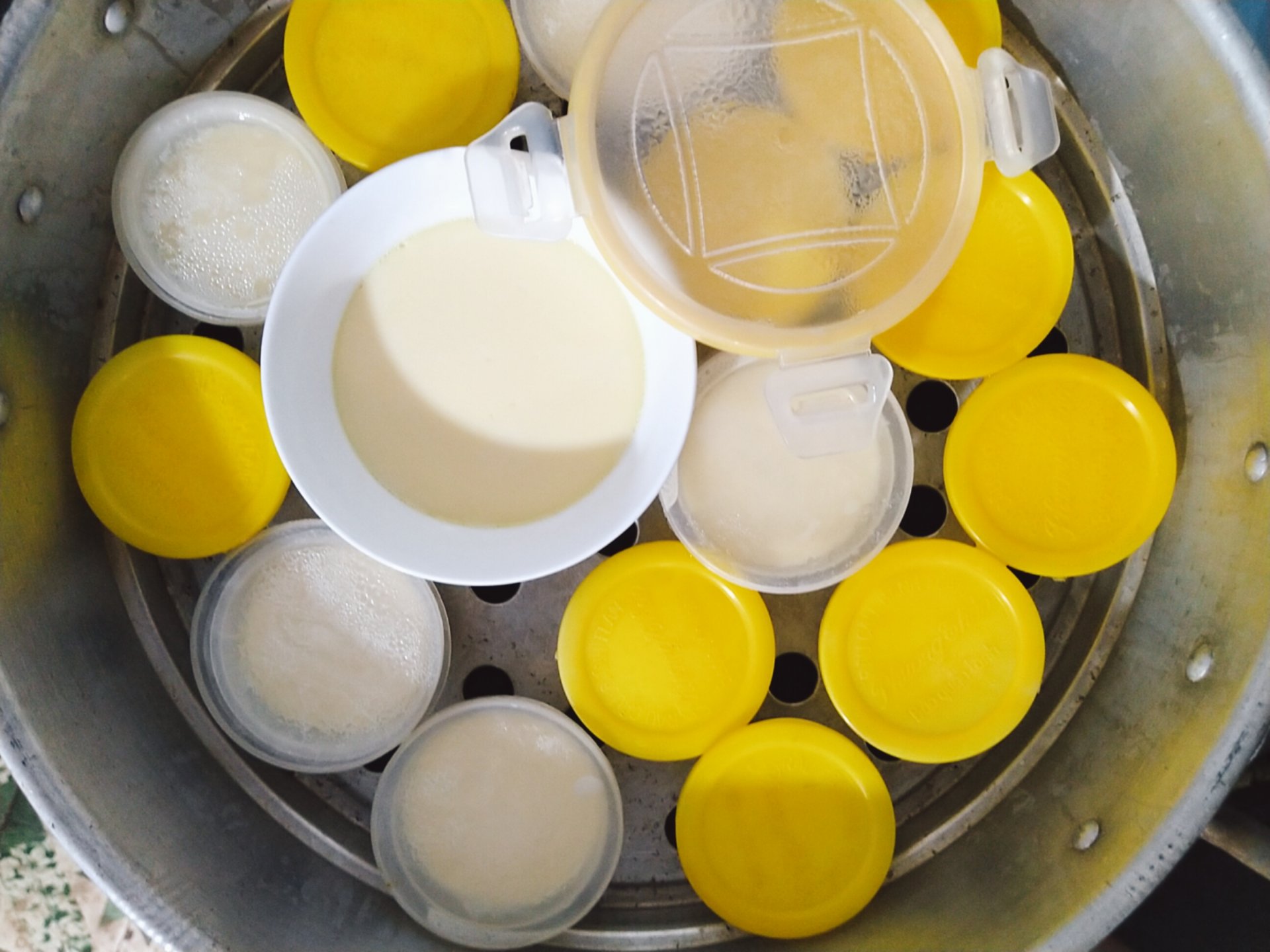 3 quả trứng dùng cả lòng trắng lẫn lòng đỏ. 2 bịch sữa tươi, đường và sữa đặc có đường cho vào sau khi đã đun nóng sữa tươi, số lượng sao cho độ ngọt vừa miệng.