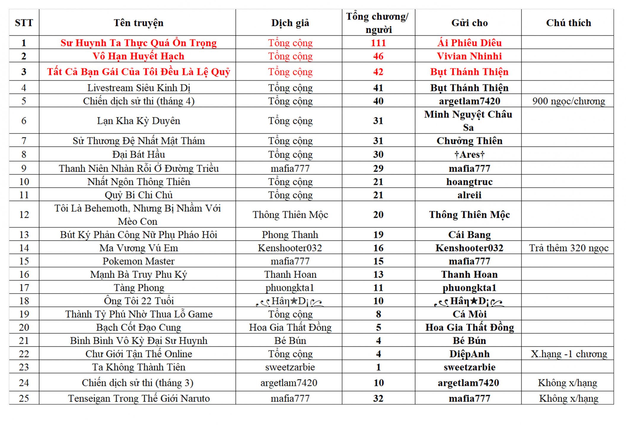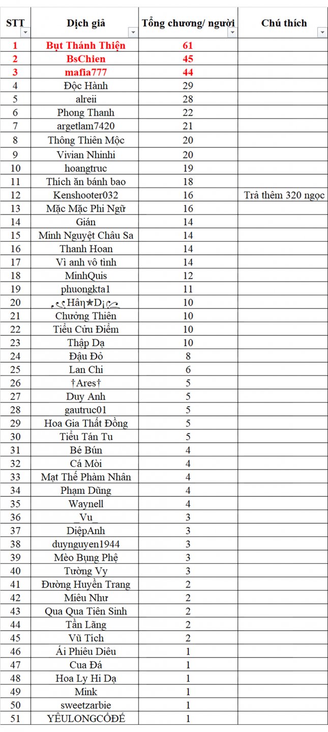 Cho đệ hỏi, huynh @BsChien có muốn lấy title Top 2 dịch giả không, và lão @mafia777 có muốn lấy title top 3 dịch giả không?