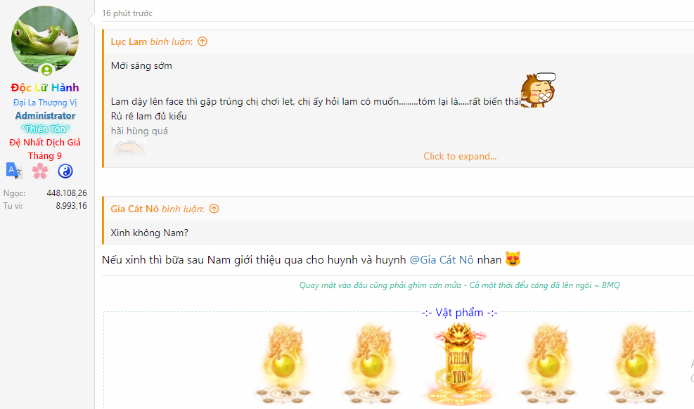 Bữa trước sắp lên rồi, ngáo ngơ ăn viên gì cái tụt 1000 tu vi xuống còn Đại Na đóPhải lên xạo tổ mới gọi là xuất sắc huynh![]()