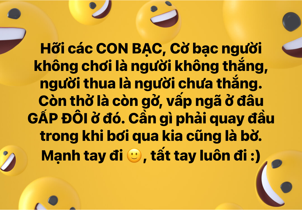 Tặng Lam nguyên lý này vậy:Hôm qua lấy thêm 36k làm vốn, lúc đầu thắng quá trời, sau lưu lạc hết, còn sót lại có 25k, bà ngoại Lam cũng bị thua mất gần trăm, lầu bầu lầu bầu bảo mãi không thấy thắng ván nào.........