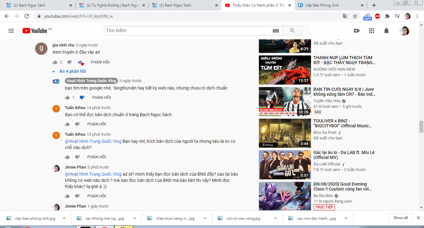 Anh chị em RP giúp video của bạn này đọc bộ Thiếu Niên Ca Hành của @Cô Gái Hiền Nhất 4rum dịch. Tuy nhiên bạn phản hồi comment là không có trang nào dịch chuẩn và kêu gọi qua TTV để đọc. Những comment vào phản hồi bản dịch của BNS thì đều bị xóa sạch!!! Chiến thôi anh chị em!!!
