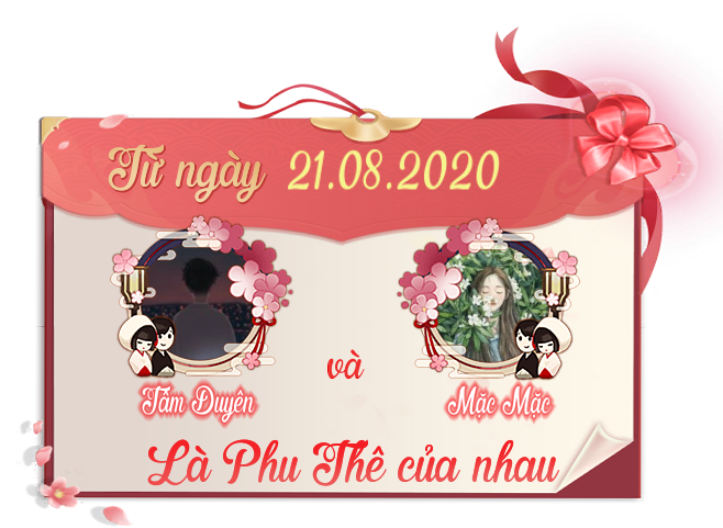 giấy chứng nhận của 2 vị đây@Tâm Duyên @Mặc Mặc gửi 2 vị chứng nhận phu thê, chúc mừng 2 vị đã chính thức trở thành phu thê của nhau, trăm năm hảo hợp nhé
