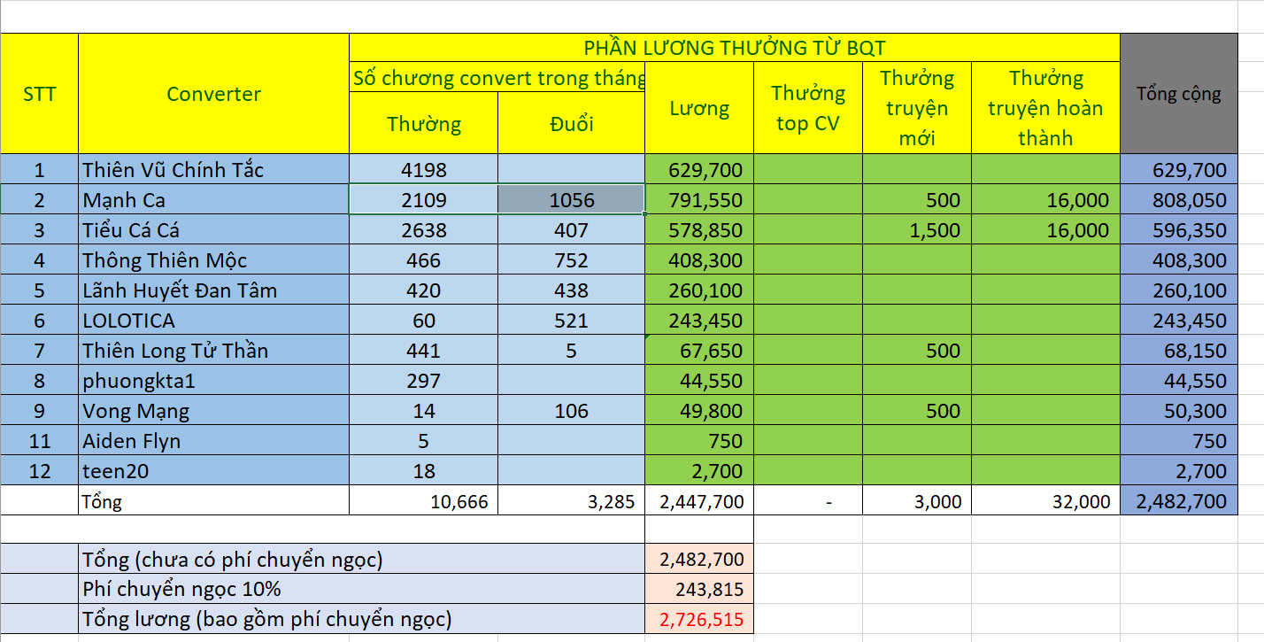 Bảng lương convert tháng 08/2020, nhờ mọi người kiểm tra lại trước khi mình báo chuyển ngọc, ngọc sẽ được chuyển trong ngày mai