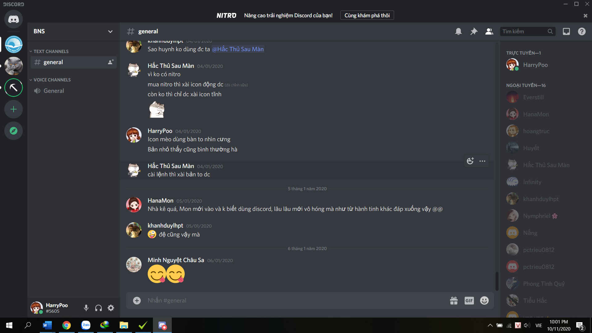 cài lại discord roài vô kênh ta mới tạo đi.Ừ há. Cái dc này phải mua nitro mới unlock mấy cái icon độc đc. Giao diện khá dễ sd, mấy con bot xịn xò phết. Nhìn thấy này lại khoái cái box nhạc để ae vào cùng nghe.
