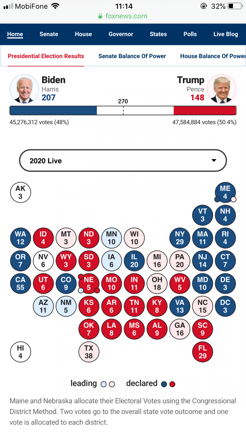223 - 148Tx đang 47 vs 51.6, khả năng Trump ăn được bang này, có bang Iowa may ra Biden lật được nhưng chỉ có 6 phiếu, chưa đủ để thắng