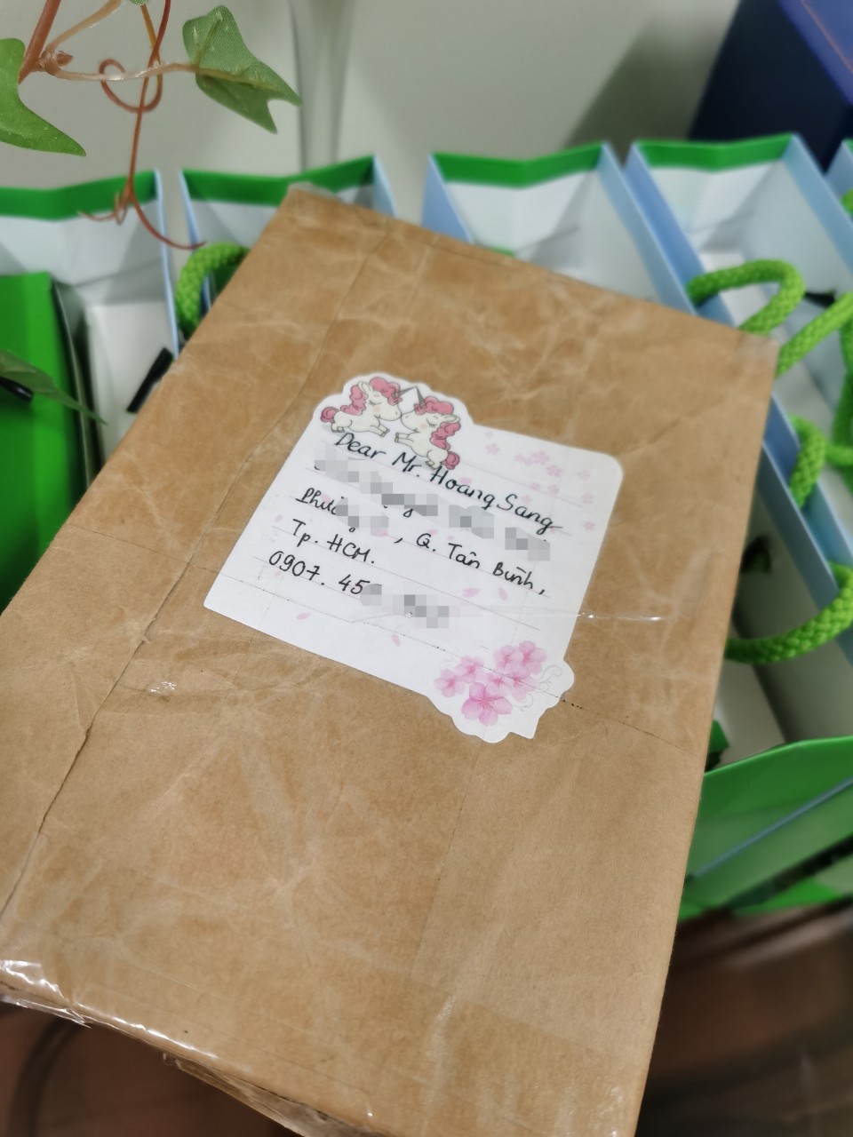 Quà đem tặng nên mụi ngồi nắn nót á, chứ chữ bt của mụi nó bới y như cái tờ gửi hàng bưu điện dán ở ngoài ớNay vừa nhận được quà của muội @Kemkensi