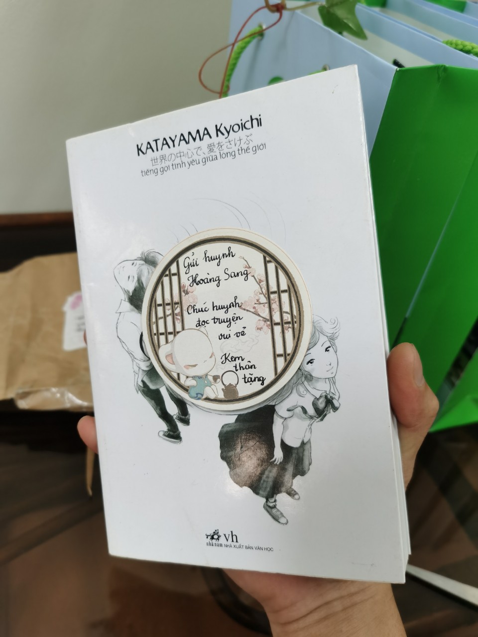 Huynh đang tò mò quà của huynh mụi viết gì trên đó, hi vọng là ko bị xỉa xói gìQuà đem tặng nên mụi ngồi nắn nót á, chứ chữ bt của mụi nó bới y như cái tờ gửi hàng bưu điện dán ở ngoài ớchúc huynh đọc sách vui vẻ. Đọc xong đem cho hoặc quyên thư viện cũng đc nha huynh ơi ❤