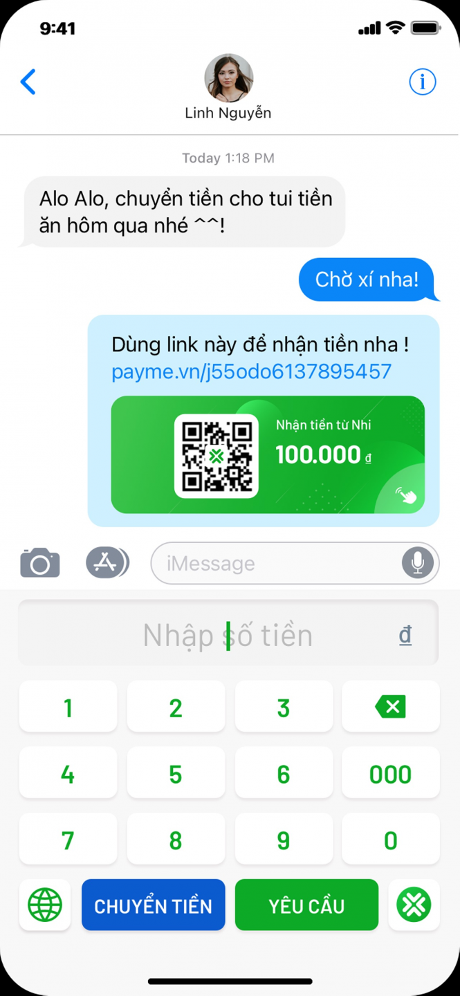 Tính năng PayME Link và PayME Key, cho phép nhanh chóng chuyển, nhận tiền từ mọi ứng dụng chat, nhắn tin