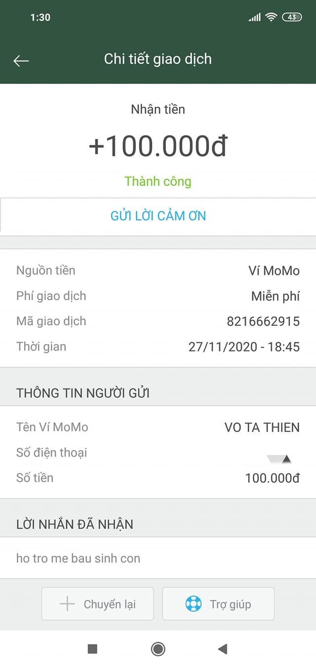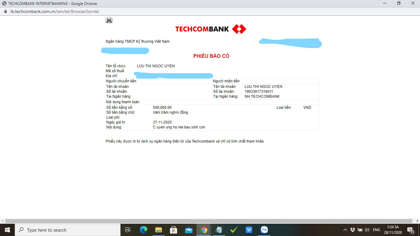 Số tiền em nhận được qua chuyển khoản để ủng hộ mẹ bầu sinh con đến lúc này là đây ạ.