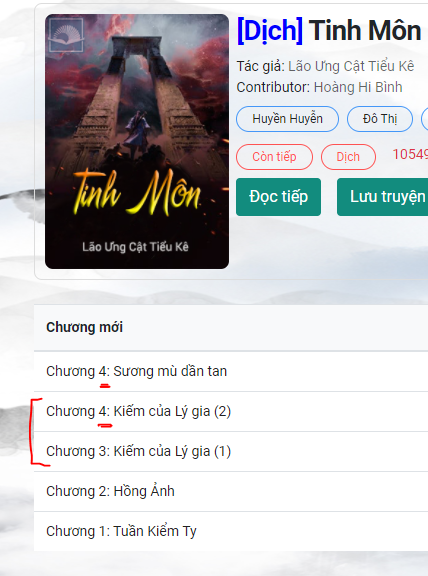 STTDịch giảSố chương không chuẩnTổng chữTổng ngọc
