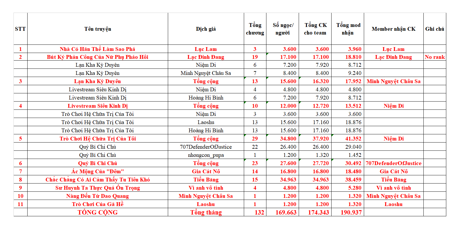 Chú Ý Báo lương truyện dịch tháng 4/2021